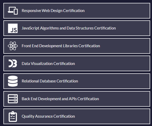 프리코드캠프로 공부를 시작했습니다. 전체 15개의 코스로 구성되어 있네요.