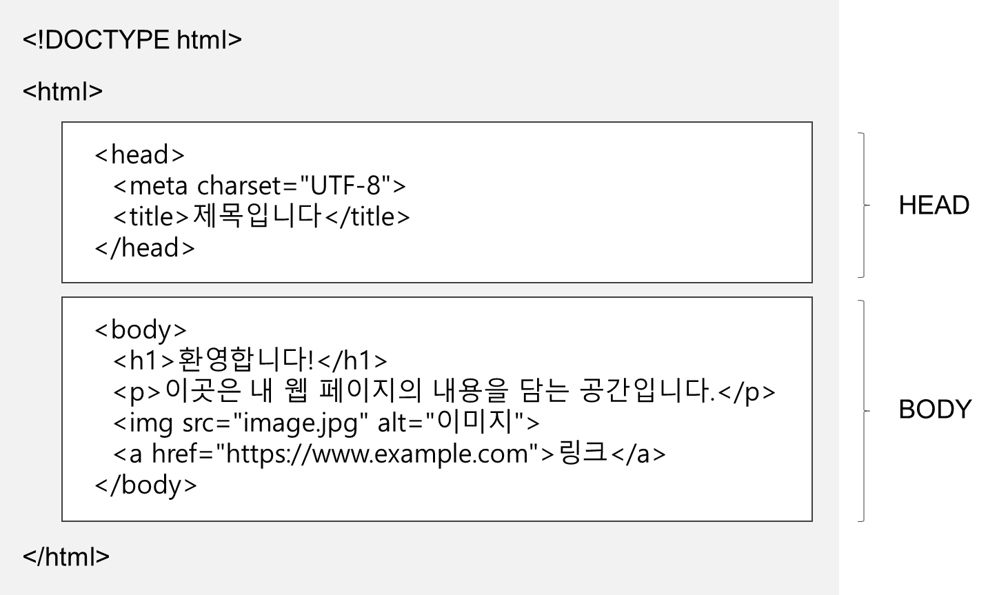 HTML은 크게 <head>와 <body>로 구성됩니다. <head> 태그는 HTML 문서의 메타데이터와 스타일시트를 정의하지만, <body>는 웹페이지의 실제 내용을 담는 부분입니다. 지금 보고 있는 블로그의 모든 텍스트, 이미지, 링크, 여기에는 없지만 비디오 등이 포함되지요.