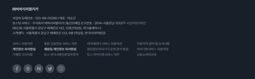 우리가 잘 알고 있는 네이버, 카카오, 토스 홈페이지도 당연히 footer가 있습니다.
